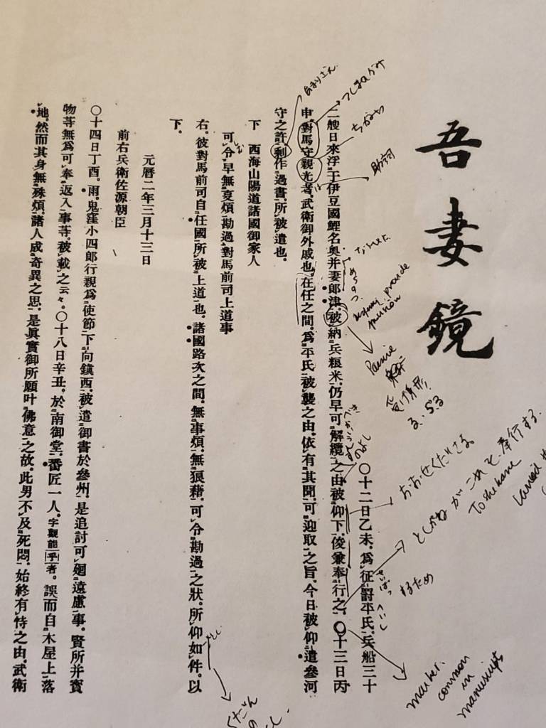 Quem deseja pesquisar esta obra no original, precisa estudar Kanbun, ou seja, textos clássicos chineses produzidos no Japão. Muitas vezes, o Kanbun japonês parece estranho para quem domina o chinês (e realmente é!), portanto, é preciso estudar esta modalidade especificamente para ler textos japoneses medievais. O Azuma Kagami está escrito em um estilo chamado Hentai Kanbun (nada a ver como hentai que vocês conhecem!), o que era extremamente difícil e inacessível à maioria dos japoneses. Ele só ganhou uma versão com furigana em 1626.